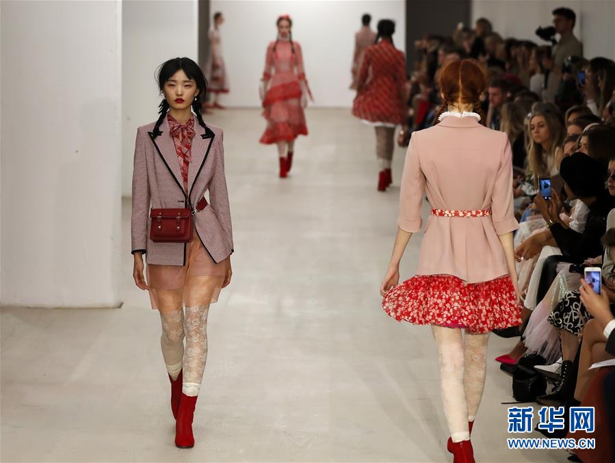 9月13日,在英国伦敦,模特在2020伦敦春夏时装周上展示BORA AKSU品牌服饰。新华社记者韩岩摄