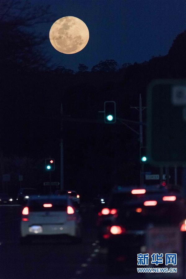 这是9月14日在澳大利亚堪培拉拍摄的月亮。 新华社发(刘畅畅摄)