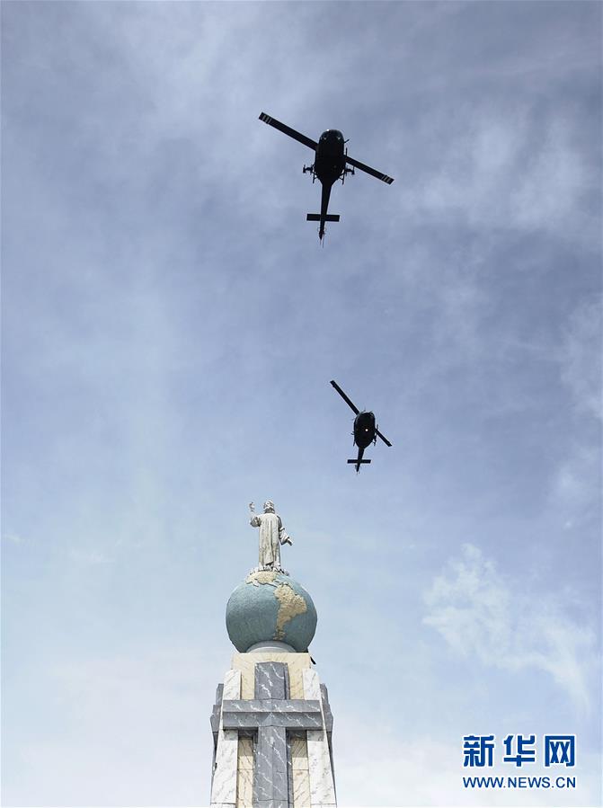 9月15日,在萨尔瓦多首都圣萨尔瓦多,军用飞机飞过城市上空。 萨尔瓦多15日举行活动庆祝独立日。 新华社发(亚历山大·培尼亚摄)