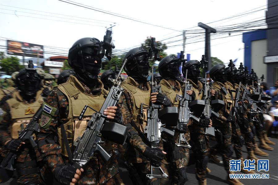 9月15日,在萨尔瓦多首都圣萨尔瓦多,士兵参加独立日庆祝活动。 萨尔瓦多15日举行活动庆祝独立日。 新华社发(亚历山大·培尼亚摄)