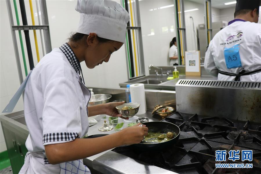 9月15日,在泰国曼谷举行的泰国首届职业教育“中文+职业技能”宝石王杯大赛上,学生参加厨师技能大赛。 泰国首届职业教育“中文+职业技能”宝石王杯大赛15日在位于首都曼谷的泰国吉拉达技术学院举行,来自泰国各地49所中等和高等职业院校的1168名学生参加了比赛。 新华社发