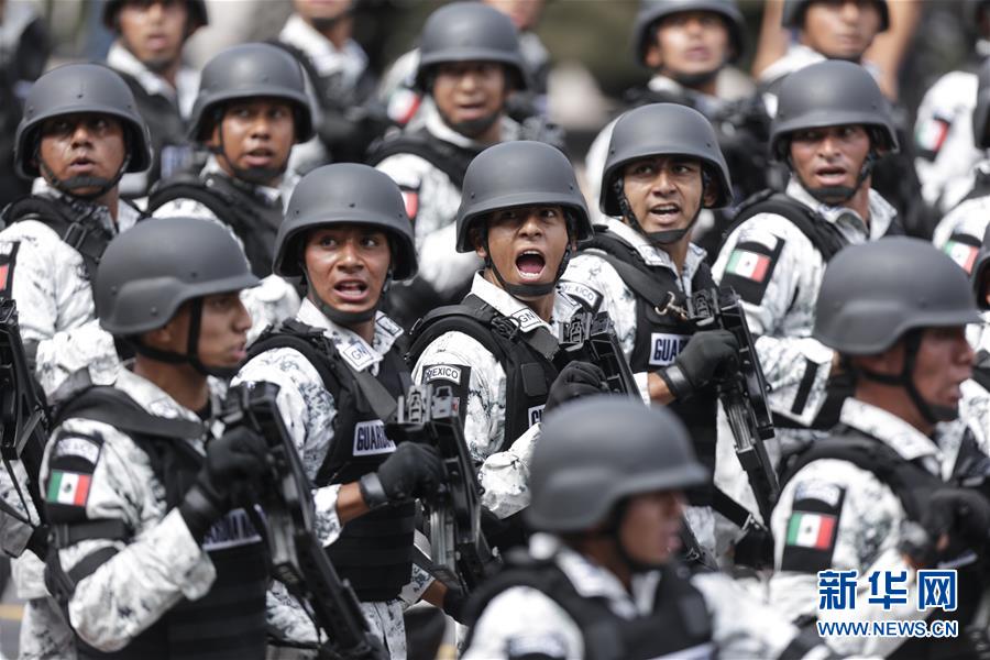 9月16日,在墨西哥首都墨西哥城,国民警卫队参加独立日阅兵。 9月16日是墨西哥独立日,墨西哥举行阅兵活动。 新华社发(弗朗西斯科·卡涅多 摄)