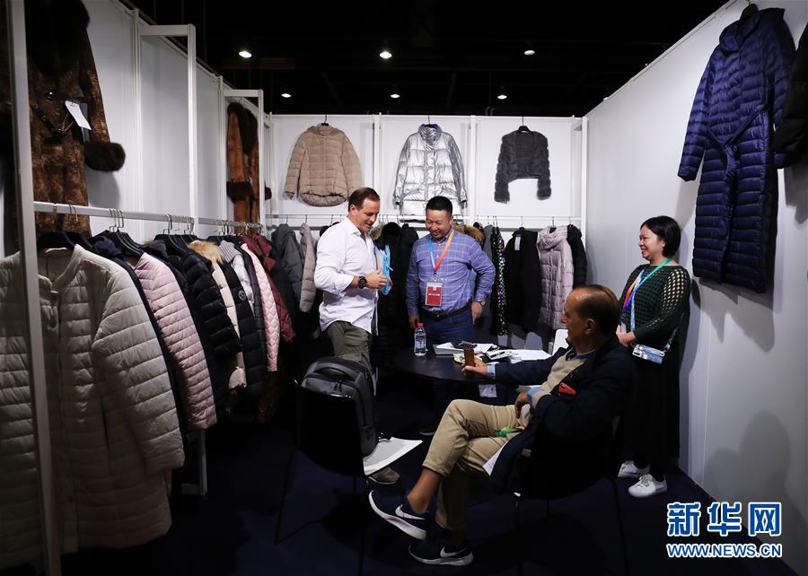 9月17日,在法国巴黎北郊布尔歇展览中心举行的第22届中国纺织品服装贸易展览会上,客商在一家中国展商的展台咨询。 第22届中国纺织品服装贸易展览会(巴黎)(简称“秋季巴黎展”)9月16日至19日在布尔歇展览中心举行。 新华社记者 高静 摄