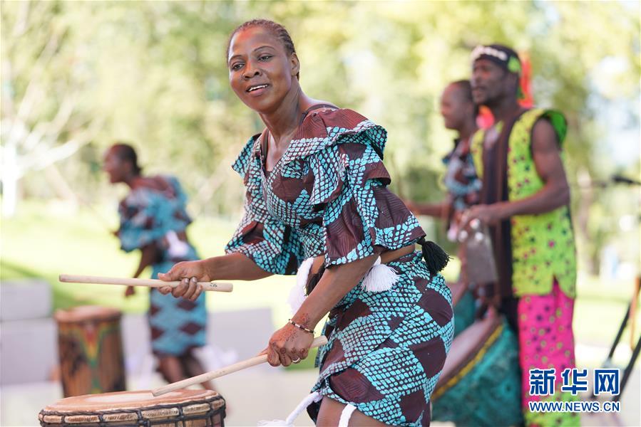 9月18日,演员在北京世园会“几内亚国家日”活动上表演。 当日,2019年中国北京世界园艺博览会“几内亚国家日”活动在北京世园会园区举行。 新华社记者鞠焕宗摄