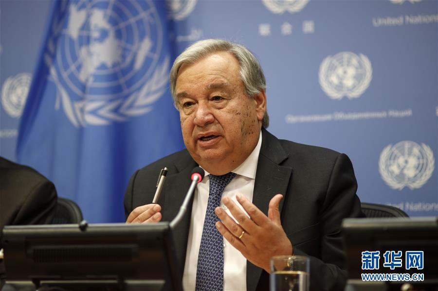 9月18日,在位于纽约的联合国总部,联合国秘书长古特雷斯出席记者会。