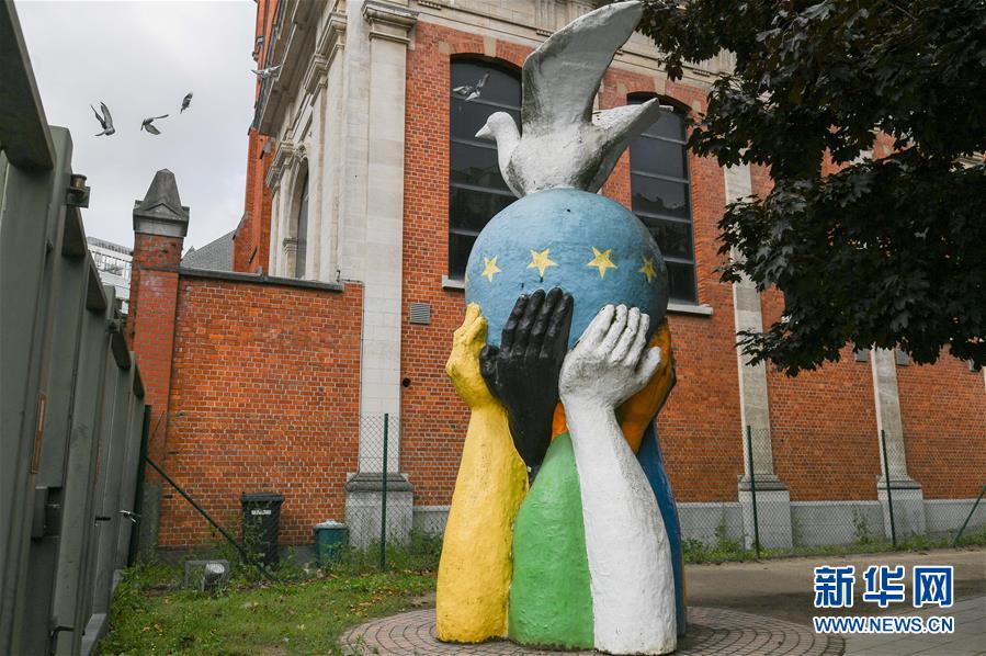 这是9月5日在比利时布鲁塞尔拍摄的“团结·和平”雕塑。 “团结·和平”雕塑位于比利时首都布鲁塞尔。这座树脂雕塑高逾5米、重约800公斤,象征着欧洲一体化所带来的和平,也阐释着“多元一体”的欧盟铭言。 新华社发(里卡多·帕雷贾尼 摄)