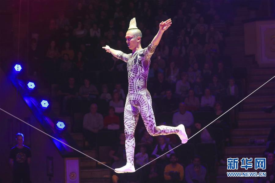 9月19日,在白俄罗斯明斯克,来自中国广州的杂技演员李维在软钢丝上表演。 第二届明斯克国际杂技艺术节19日晚在白俄罗斯首都明斯克开幕,吸引了包括中国在内的多国演员参演。 新华社发(任科夫摄)
