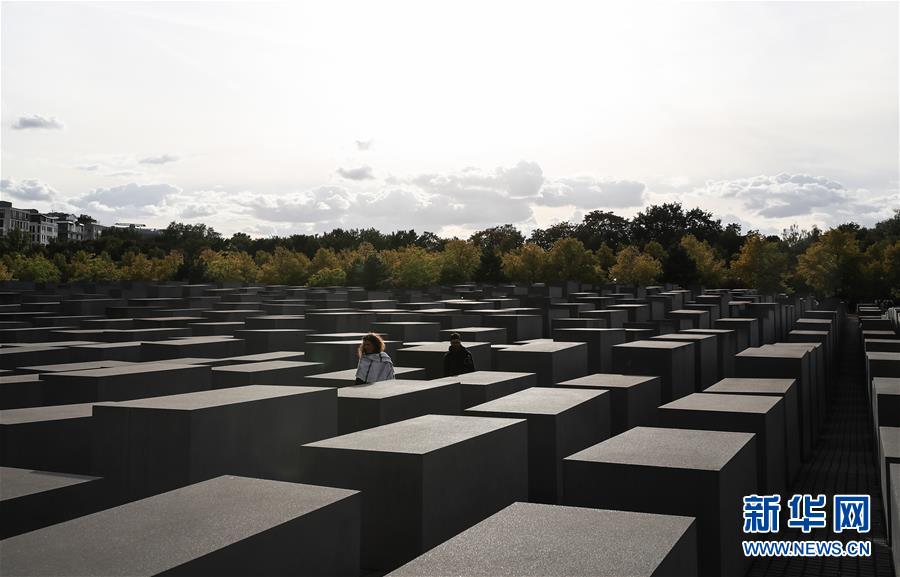 9月19日,在德国柏林,游客在欧洲被害犹太人纪念碑间穿行。 欧洲被害犹太人纪念碑位于柏林市中心,占地1.9万平方米,是由2711块大小不一的长方体水泥碑石组成的碑林。碑林下方是一个地下档案展览馆,展示欧洲犹太人当年惨遭纳粹德国迫害和屠杀的历史资料。欧洲被害犹太人纪念碑始建于2003年春,2004年底最后一块碑石安装完毕,于2005年5月12日起对外开放。 新华社记者单宇琦摄