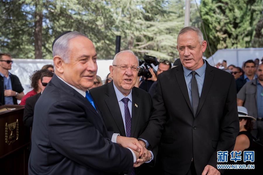 9月19日,以色列总统里夫林(中)、总理内塔尼亚胡(左)和蓝白党领袖本尼·甘茨在耶路撒冷出席为以色列已故总统西蒙·佩雷斯举行的纪念仪式时握手。 以色列总统里夫林、总理内塔尼亚胡和蓝白党领袖本尼·甘茨19日共同出席在耶路撒冷为以色列已故总统西蒙·佩雷斯举行的纪念仪式。内塔尼亚胡在仪式上发表讲话,提议与甘茨共同组建联合政府。甘茨当天下午发表声明,拒绝内塔尼亚胡的提议并要求内塔尼亚胡加入甘茨领导下的联合政府。 新华社/基尼图片社