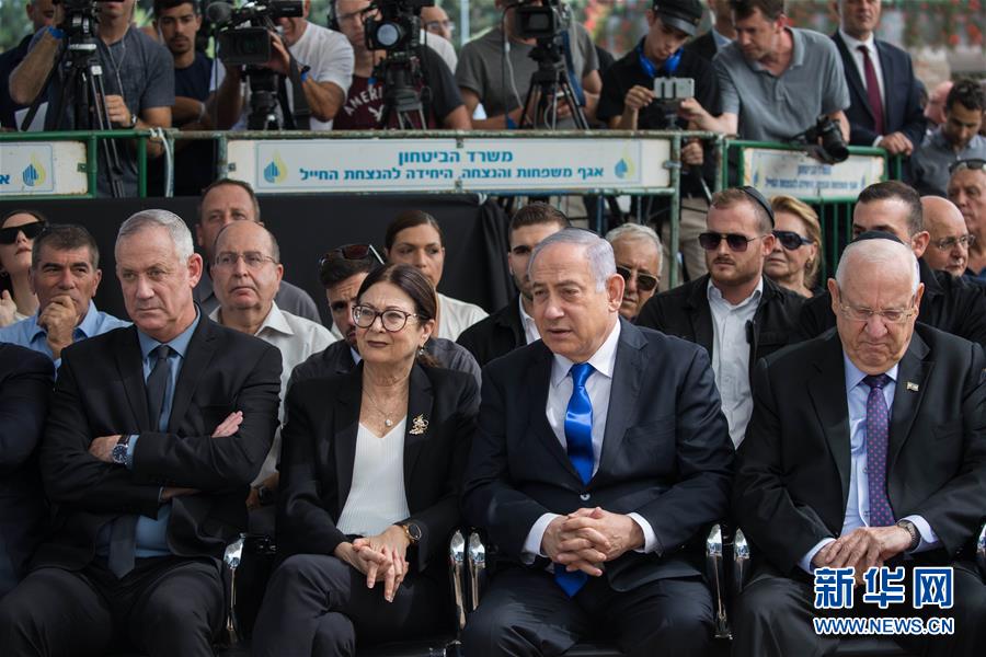 9月19日,以色列总统里夫林(前排右一)、总理内塔尼亚胡(前排右二)和蓝白党领袖本尼·甘茨(前排左一)在耶路撒冷出席为以色列已故总统西蒙·佩雷斯举行的纪念仪式。 以色列总统里夫林、总理内塔尼亚胡和蓝白党领袖本尼·甘茨19日共同出席在耶路撒冷为以色列已故总统西蒙·佩雷斯举行的纪念仪式。内塔尼亚胡在仪式上发表讲话,提议与甘茨共同组建联合政府。甘茨当天下午发表声明,拒绝内塔尼亚胡的提议并要求内塔尼亚胡加入甘茨领导下的联合政府。 新华社/基尼图片社