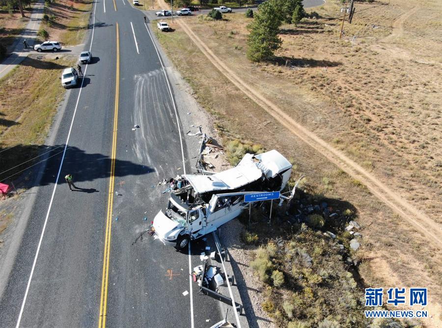 这张犹他州高速公路巡警9月20日提供的照片显示的是美国犹他州布赖斯峡谷国家公园附近的车祸现场。 中国驻美国大使馆20日发表声明说,美国犹他州布赖斯峡谷国家公园附近当天中午发生严重车祸,造成多名中国公民伤亡。 新华社发(犹他州高速公路巡警供图)