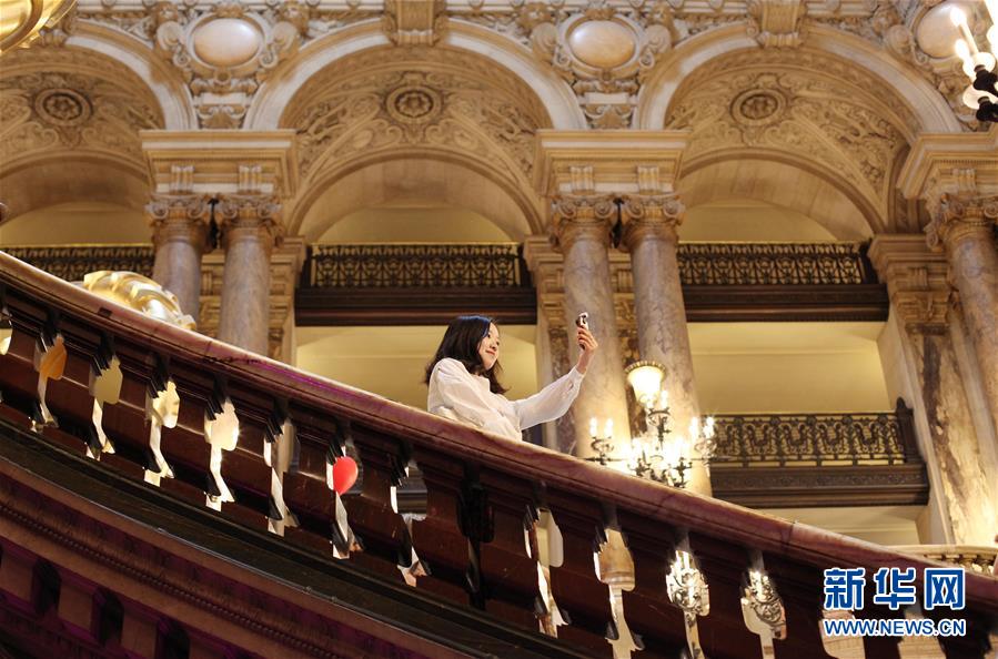 9月21日,在法国巴黎,一名游客参观巴黎歌剧院。新华社记者 高静 摄
