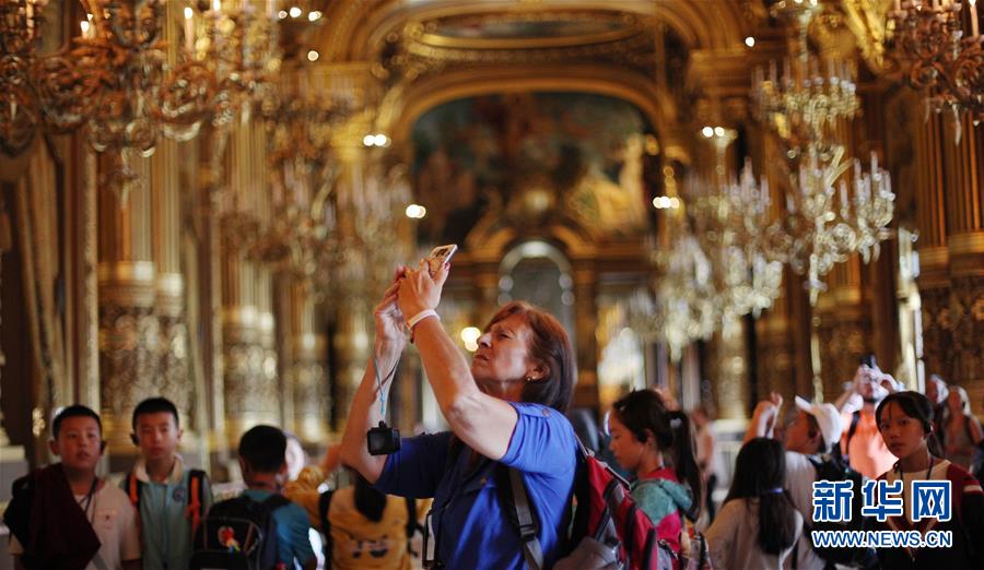9月21日,在法国巴黎,游客参观巴黎歌剧院。新华社记者 高静 摄