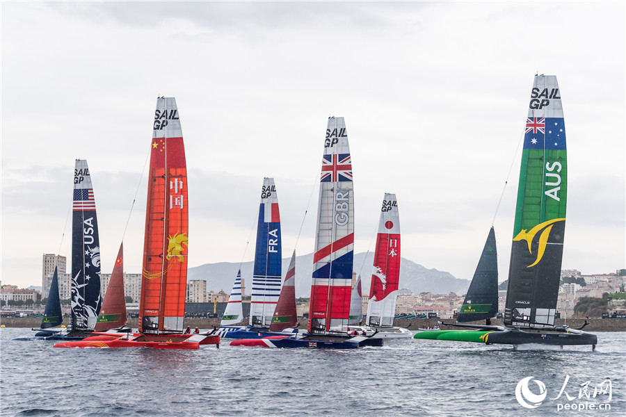 国际帆船大奖赛马赛站,参加比赛的六国赛船。