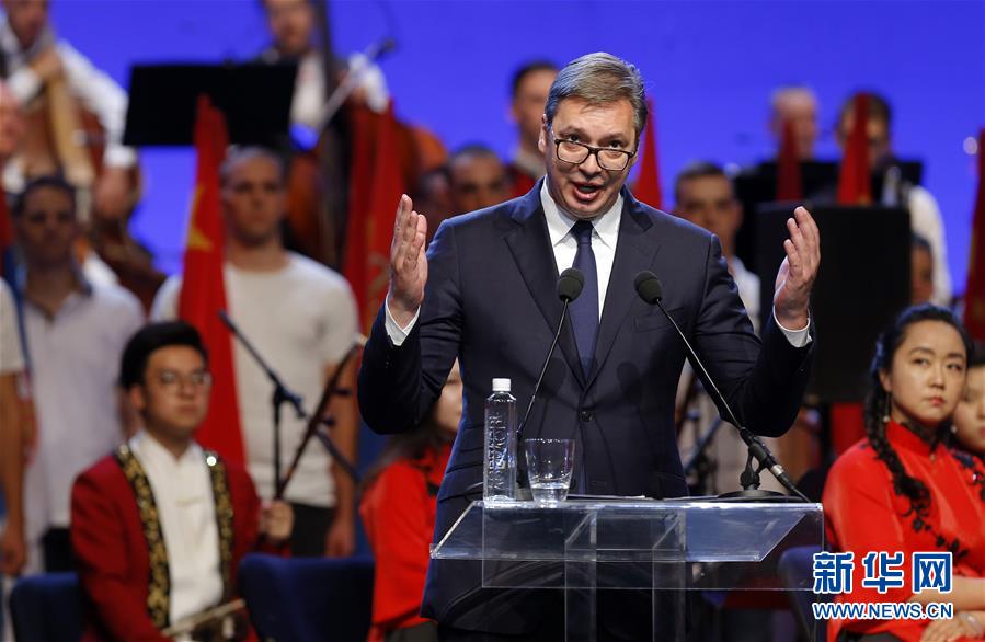 9月21日,在塞尔维亚首都贝尔格莱德,塞尔维亚总统武契奇在招待会上致辞。 塞尔维亚总统武契奇21日在中国驻塞使馆举行的国庆70周年招待会上致辞说,中国是塞尔维亚最真诚、最可信赖的朋友。 中国驻塞尔维亚使馆当天举办主题为“钢铁友谊 共创繁荣”的国庆70周年招待会。塞尔维亚总统武契奇、总理布尔纳比奇、副总理兼内务部长斯特凡诺维奇等政要、塞社会各界代表、其他国家驻塞使节以及中资机构、华侨华人代表等近3000人出席。 新华社发(普雷德拉格·米洛萨夫列维奇摄)