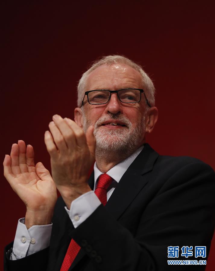 9月23日,在英国布莱顿,英国工党领袖科尔宾在工党年度大会上鼓掌。 当日,2019年英国工党年度大会在英国布莱顿继续进行。 新华社记者韩岩摄