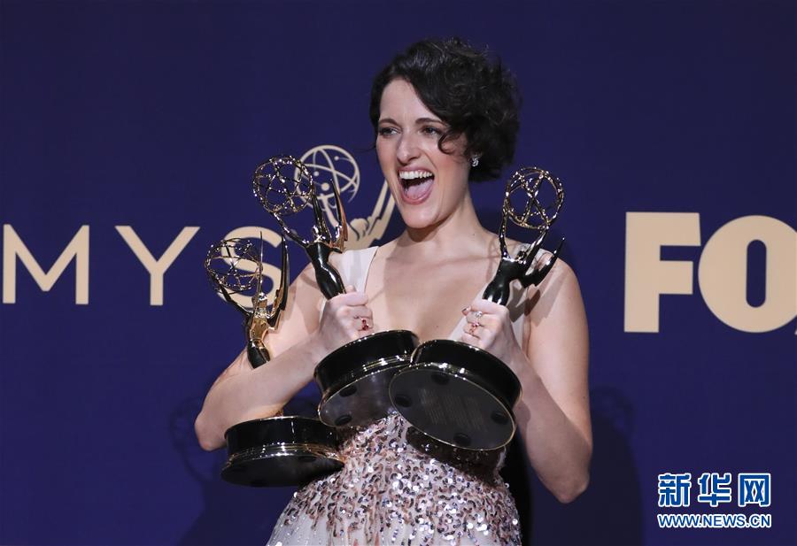 9月22日,在美国洛杉矶,菲比·沃勒-布里奇展示奖杯。她参演的《伦敦生活》获得艾美奖喜剧类最佳剧集奖,菲比·沃勒-布里奇独得喜剧类最佳女主角和喜剧类最佳编剧奖。 当日,第71届美国“黄金时段艾美奖”在美国洛杉矶微软剧院举行颁奖礼。 新华社记者李颖摄