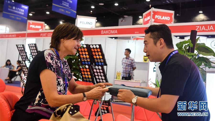 9月23日,中波两国商家在洽谈业务后互留名片。新华社记者 张爱林 摄