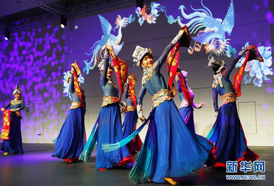 9月23日,在卢森堡埃斯佩朗日市文化中心举行的“成都天府文化周”活动上,演员表演羌族舞蹈《尔玛兰巴》。 为庆祝中华人民共和国成立70周年,“成都天府文化周”活动23日晚在卢森堡埃斯佩朗日市文化中心拉开帷幕,一场来自熊猫故乡的文化盛宴受到本地居民和当地国际社区民众的热烈欢迎。 新华社记者 潘革平 摄