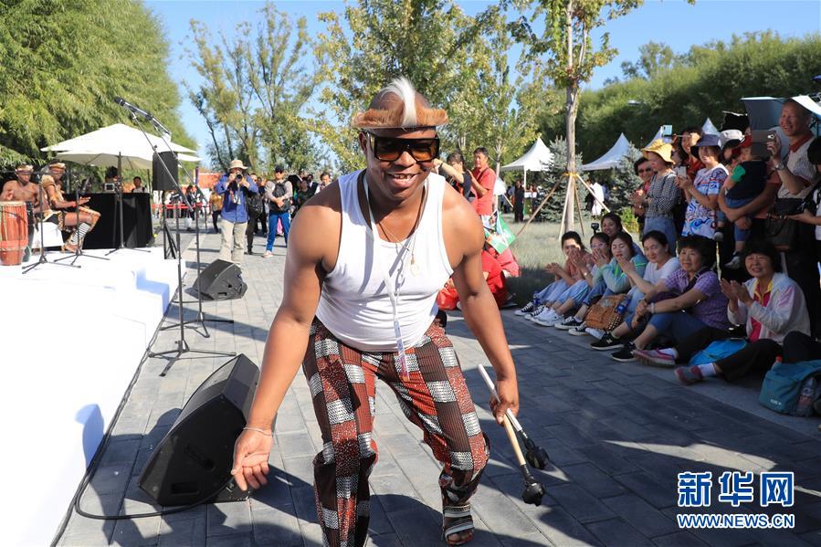 9月24日,演员在“南非文化遗产日”活动上表演。 当日,北京世园会迎来“南非文化遗产日”。在草坪剧场,鲜艳的非洲服饰、热情奔放的舞蹈,在世园会掀起非洲热浪,吸引了大量游客观赏。 新华社发(段学峰 摄)
