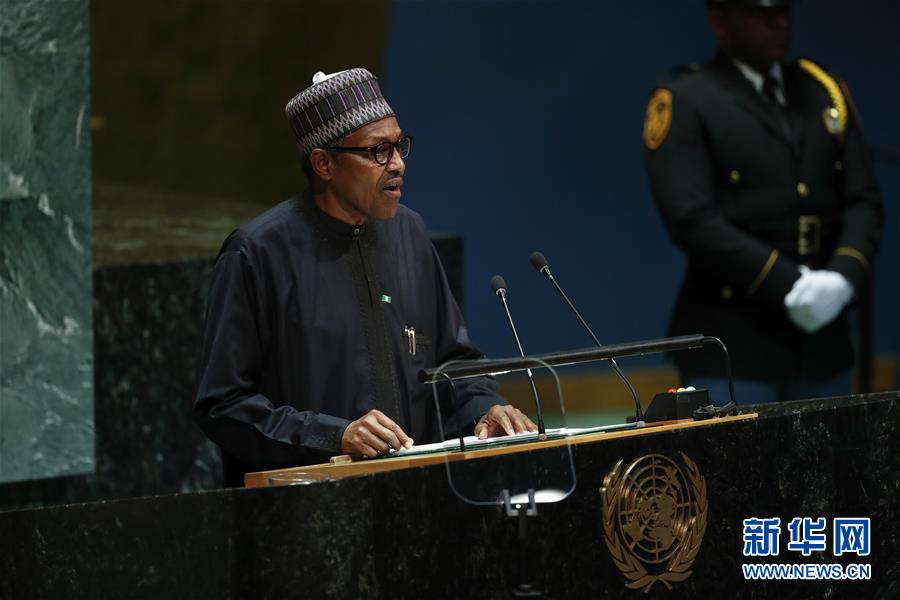 9月24日,在位于纽约的联合国总部,尼日利亚总统布哈里在第74届联合国大会一般性辩论上发言。 新华社记者李木子摄