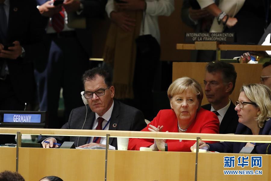 9月24日,在位于纽约的联合国总部,德国总理默克尔(前中)出席第74届联合国大会一般性辩论。新华社记者李木子摄