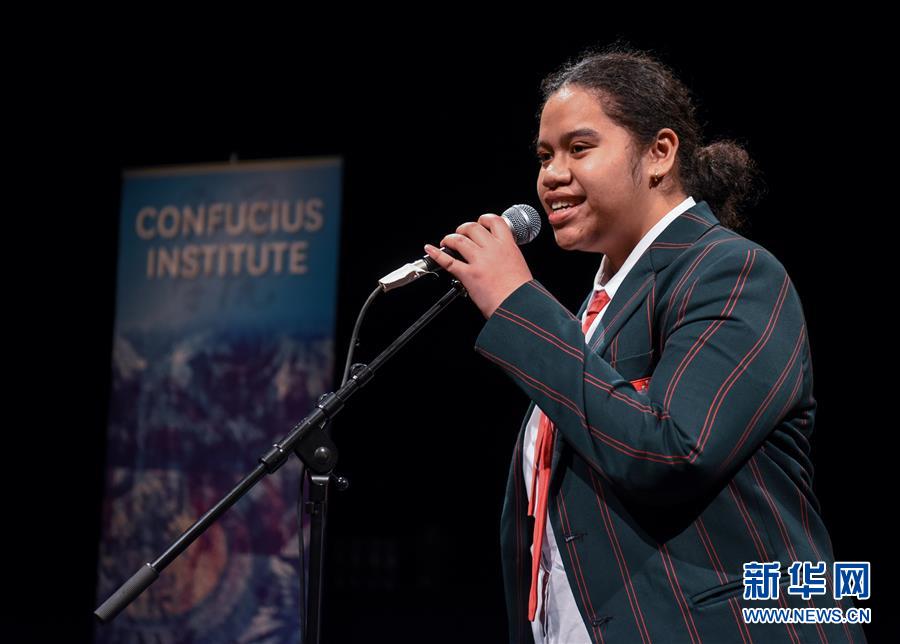 9月24日,在新西兰惠灵顿,阿马妮演唱中文歌曲《雪落下的声音》。她最终获得高中组第一名。新华社记者郭磊摄