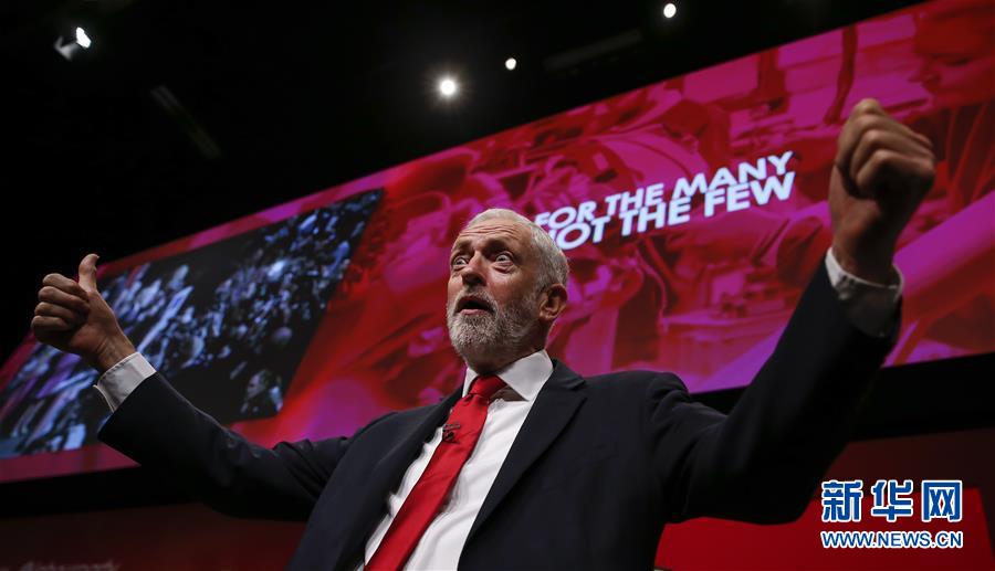 英国工党领袖科尔宾在工党年会发表主旨演讲