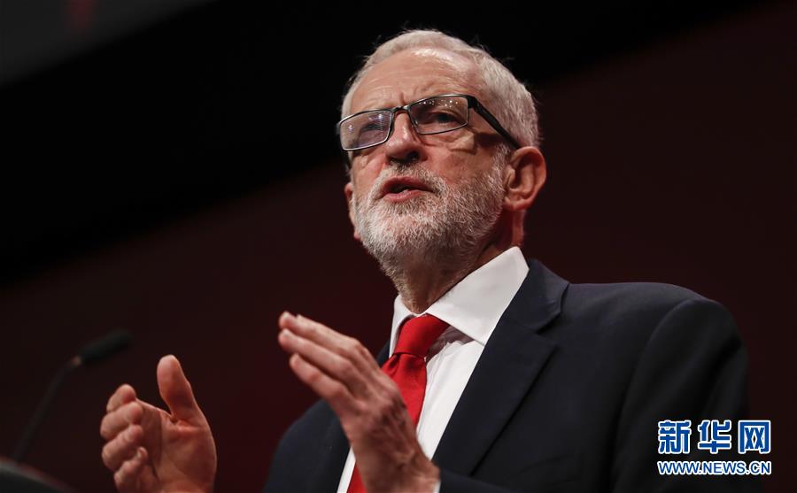 9月24日,在英国布莱顿,英国工党领袖科尔宾在工党年度大会上发表主旨演讲。 2019年英国工党年度大会将于9月25日在英国布莱顿闭幕。 新华社记者 韩岩 摄