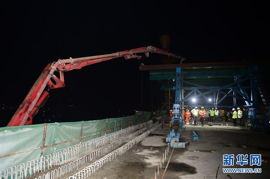 9月24日,在印尼雅万高铁DK1353桥22-25号墩,工作人员对首座连续梁进行浇筑。 印度尼西亚雅万高铁项目全线首座连续梁24日晚顺利合龙,为后续箱梁架设和铺轨工作奠定基础。 新华社记者 杜宇 摄