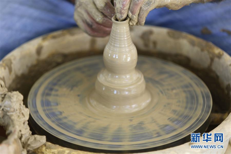 9月25日,在黎巴嫩南部的拉谢亚福哈尔小镇,陶器艺人在一间作坊里制作陶器。 新华社发(比拉尔·贾维希摄)