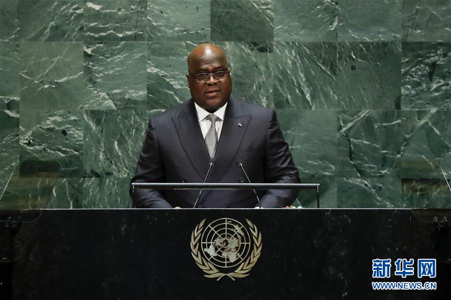 9月26日,在位于纽约的联合国总部,刚果(金)总统齐塞克迪在第74届联合国大会一般性辩论上发言。