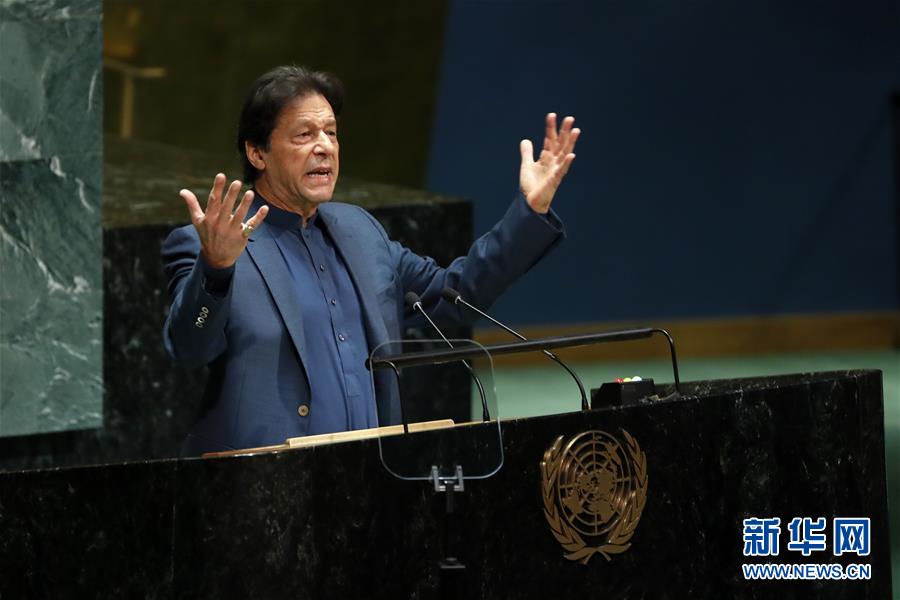 9月27日,在位于纽约的联合国总部,巴基斯坦总理伊姆兰·汗在第74届联合国大会一般性辩论上发言。当日,第74届联合国大会一般性辩论进入第四天。新华社记者李木子摄