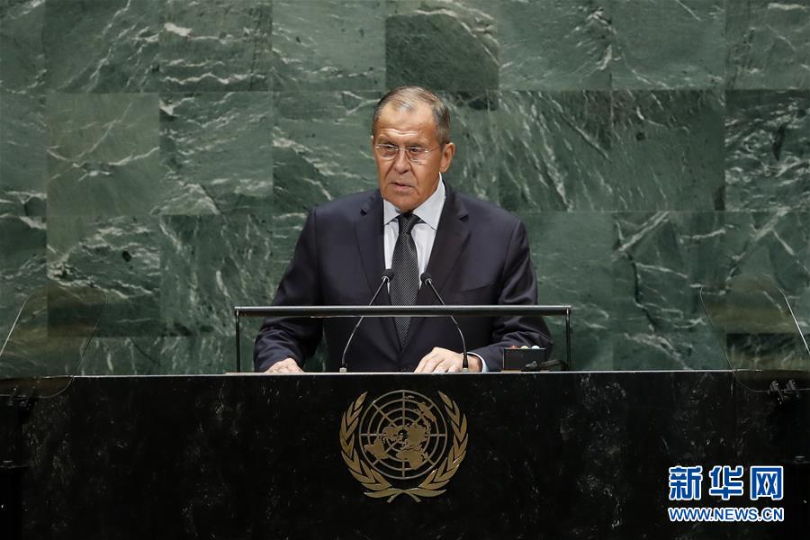 9月27日,在位于纽约的联合国总部,俄罗斯外长拉夫罗夫在第74届联合国大会一般性辩论上发言。 当日,第74届联合国大会一般性辩论进入第四天。 新华社记者李木子摄