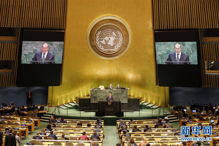 9月27日,在位于纽约的联合国总部,俄罗斯外长拉夫罗夫在第74届联合国大会一般性辩论上发言。 当日,第74届联合国大会一般性辩论进入第四天。 新华社记者李木子摄