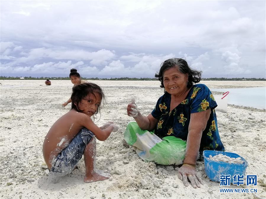 2019年3月12日,在基里巴斯首都塔拉瓦,当地人在海边挖小海螺。 新华社发(中国驻斐济大使馆提供)