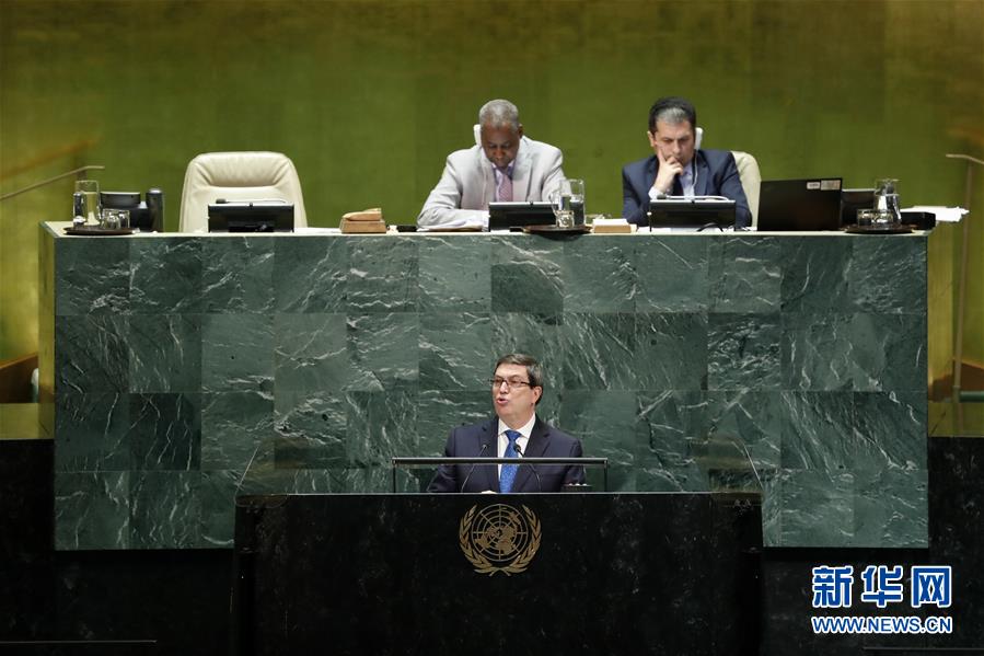 9月28日,在位于纽约的联合国总部,古巴外长罗德里格斯在第74届联合国大会一般性辩论上发言。 当日,第74届联合国大会一般性辩论进入第五天。 新华社记者 李木子 摄