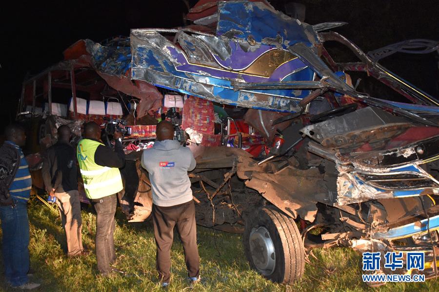 这是10月4日在肯尼亚西部基苏木郡拍摄的车祸现场。 肯尼亚警方4日说,基苏木郡3日夜间发生一起严重交通事故,造成至少13人死亡、35人受伤。 新华社发(弗雷德·穆通 摄)