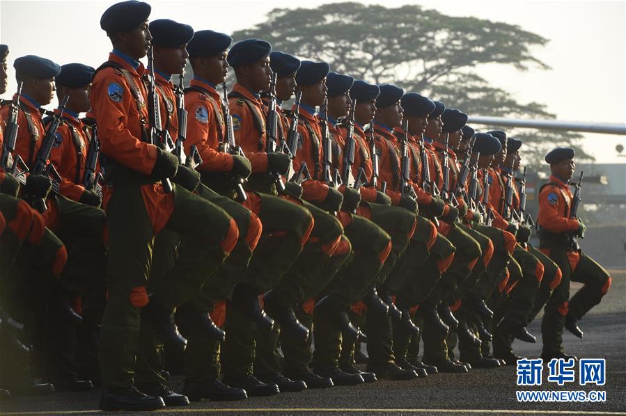 10月5日,在印度尼西亚雅加达,士兵参加国民军建军74周年庆祝活动。 当日是印度尼西亚国民军建军74周年纪念日。 新华社发(祖卡南摄)