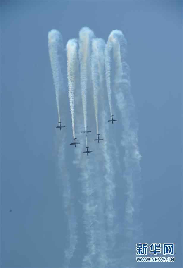 10月5日,在印度尼西亚雅加达,特技飞行队在国民军建军74周年庆祝活动上表演。 当日是印度尼西亚国民军建军74周年纪念日。 新华社发(祖卡南摄)