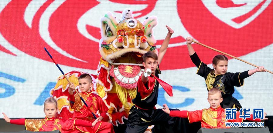 10月5日,在白俄罗斯首都明斯克,当地青少年在“孔子学院日”活动上表演武术。 新华社发(任科夫摄)