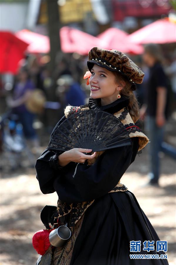 10月5日,在美国得克萨斯州休斯敦附近的托德米申,身着复古服饰的演员在文艺复兴节上表演。 美国得克萨斯州文艺复兴节5日在托德米申拉开序幕。上百名装扮成国王、骑士、仙女、海盗等形象的演员为观众带来别开生面的复古体验。 新华社发(宋穹摄)
