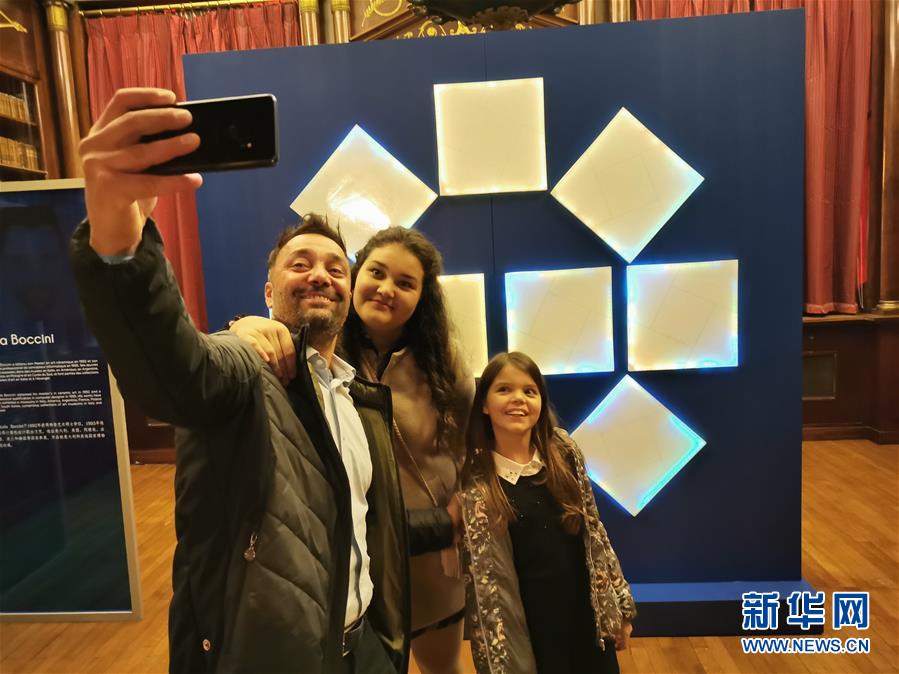 10月6日,在法国尼斯马塞纳博物馆,观众在白瓷艺术作品前拍照留念(手机拍摄)。 新华社记者 徐永春 摄
