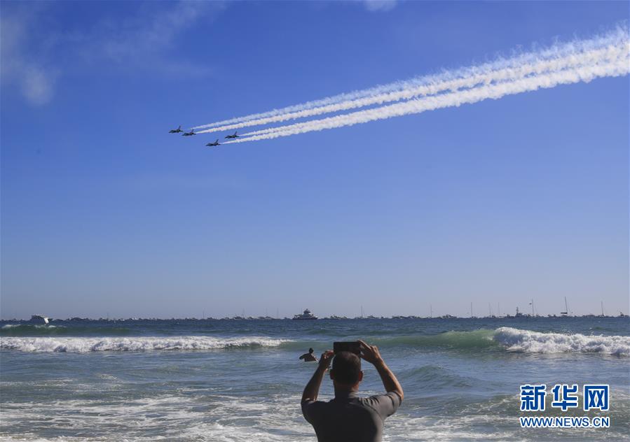 10月6日,在美国加利福尼亚州亨廷顿海滩,一名男子拍摄特技飞行表演。 一年一度的亨廷顿海滩特技飞行表演于10月4日至6日举行。 新华社记者李颖摄