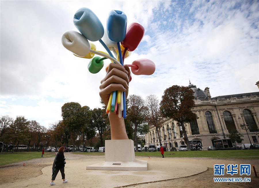 这是10月7日在法国巴黎小皇宫博物馆附近拍摄的“郁金香花束”雕塑。新华社记者高静摄