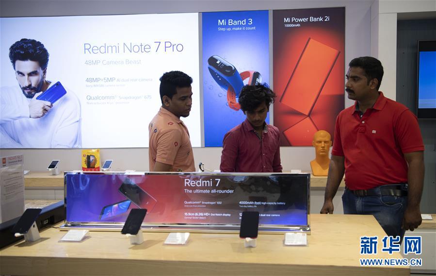 这是在印度金奈的一家商场,人们在中国品牌小米的门店购买手机(2019年10月8日摄)。 新华社记者 吕小炜 摄