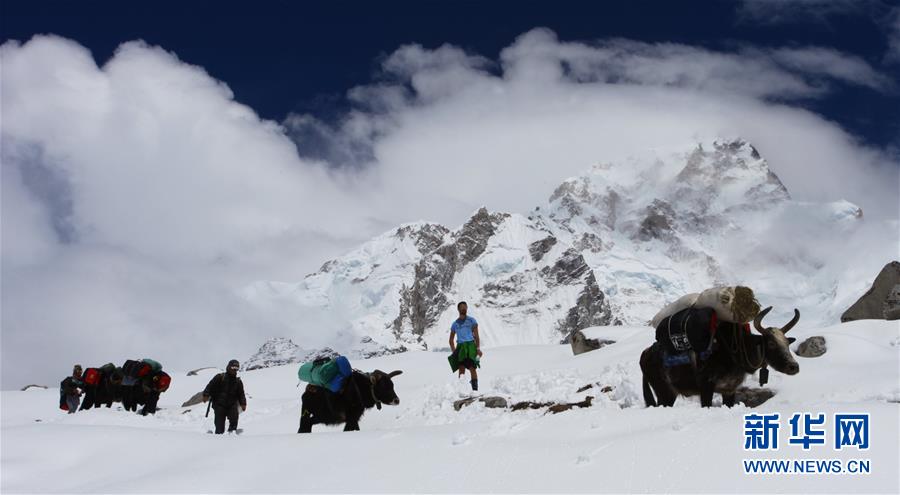 2014年5月28日,游客在尼泊尔珠峰大本营附近的登山线路上行进。 尼泊尔位于喜马拉雅山南麓,与中国和印度相邻,是一个内陆山国。 新华社发(苏尼尔·夏尔马摄)