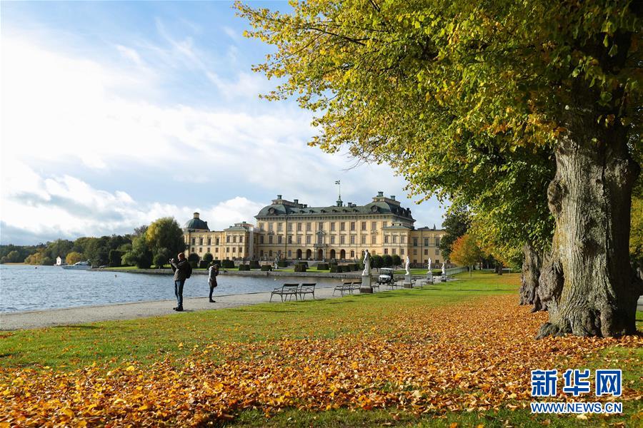 10月11日,在瑞典首都斯德哥尔摩,游客在德罗特宁霍姆宫附近游览。新华社记者郑焕松摄