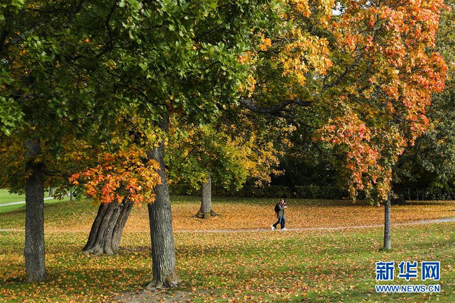 10月11日,在瑞典首都斯德哥尔摩,游客在德罗特宁霍姆宫的花园游览。 新华社记者郑焕松摄