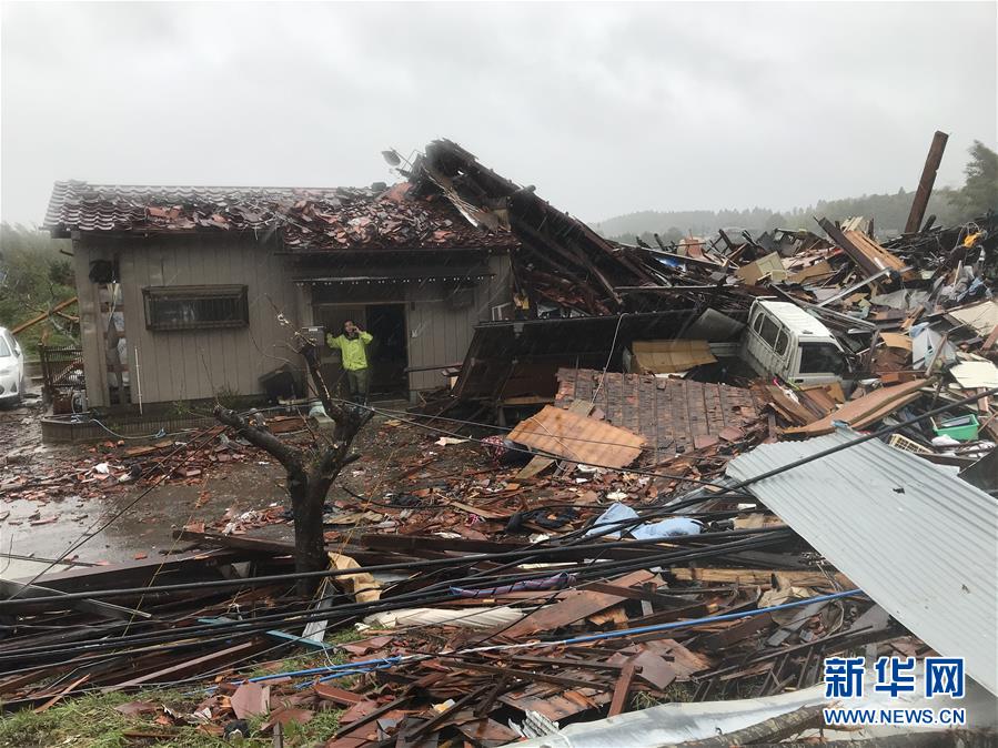 10月12日,在日本千叶县市原市,建筑物遭龙卷风袭击后被损毁。新华社记者 邓敏 摄